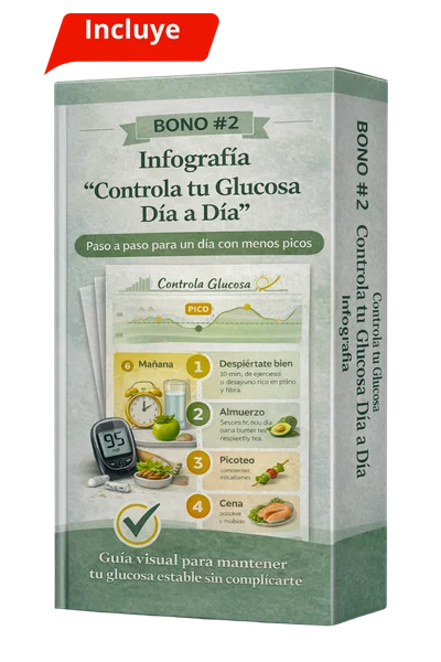Los bonos están diseñados para complementar tu experiencia y ofrecerte una guía integral: desde conocer los alimentos más amigables para tu glucosa, hasta ejercicios matutinos para sentirte mejor cada día. Estos bonos no solo enriquecen tu alimentación, sino que también te dan herramientas adicionales para mejorar tu bienestar general.