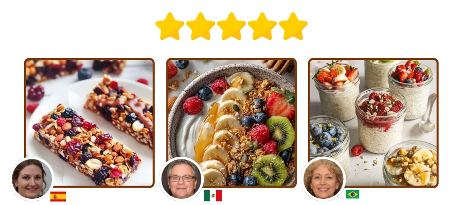 Sabemos que el tiempo es oro, y por eso hemos creado recetas que se preparan en minutos. No tienes que sacrificar tu bienestar por falta de tiempo, con nuestro recetario podrás disfrutar de snacks saludables y fáciles, perfectos para padres, emprendedores y cualquier persona ocupada. ¡Comodidad y salud, todo en uno!